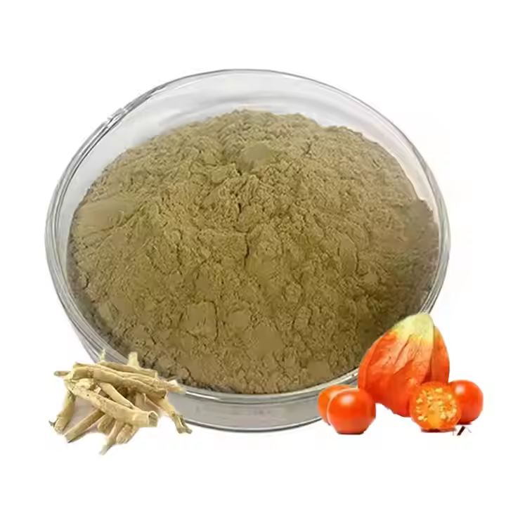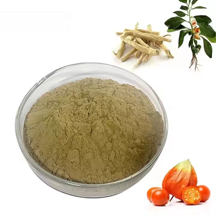 Ashwagandha extract is made from the root of Withania Somnifera, which is also called indian ginseng. The main active ingredient of ashwagandha extract is withanolides, and withanolides are a group of steroids. Ashwagandha extract is brown powder with characteristic odor.